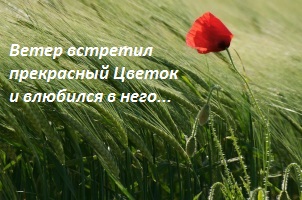 Ветер встретил прекрасный Цветок и влюбился в него. Пока он нежно ласкал Цветок, тот отвечал ему еще большей любовью, выраженной в цвете и аромате.