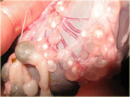 Изувеченная паразитами поджелудочная железа (в ходе операции её полностью удалили):