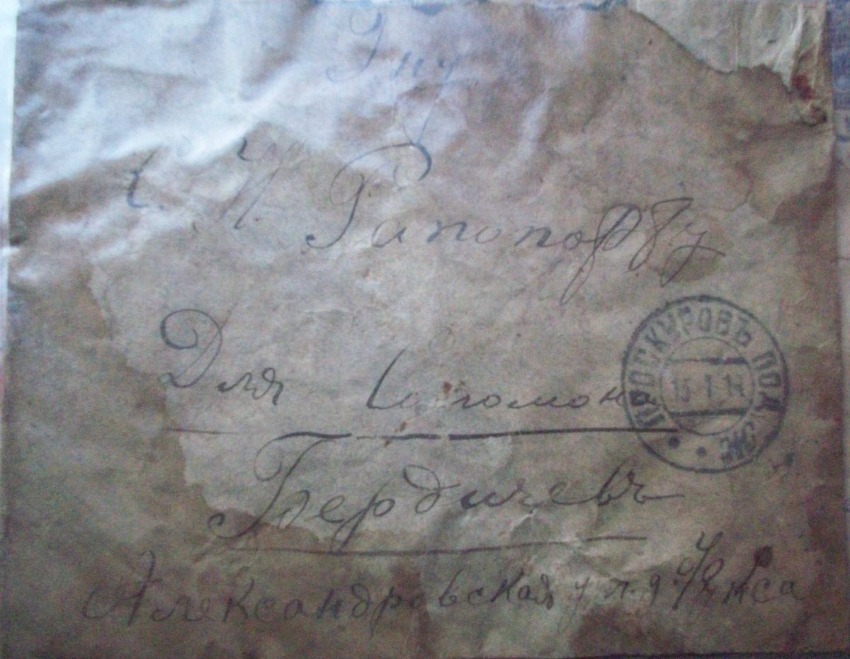 Вопрос к бердичевлянам по поводу адреса на дореволюционном конверте: г.Бердичев ул.Александровская, дом Фукса.